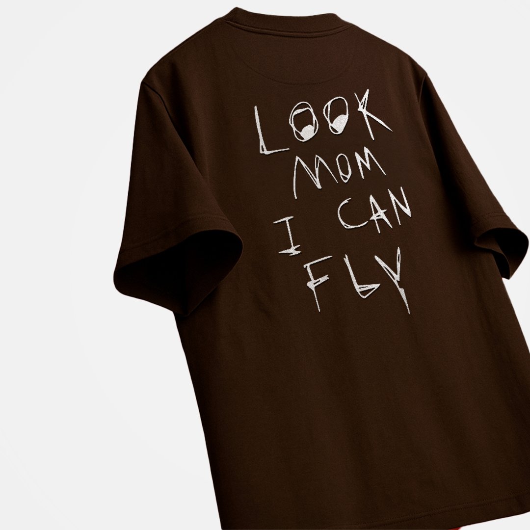 Make a statement with the Look Mom I Can Fly t-shirt. Crafted from soft 80% cotton and 20% polyester in a rich dark brown color, it features a minimalist “Cactus Jack” graphic on the front and bold, hand-drawn “Look Mom I Can Fly” lettering on the back. With its relaxed fit and premium feel, this tee is perfect for everyday wear with a touch of attitude and style.