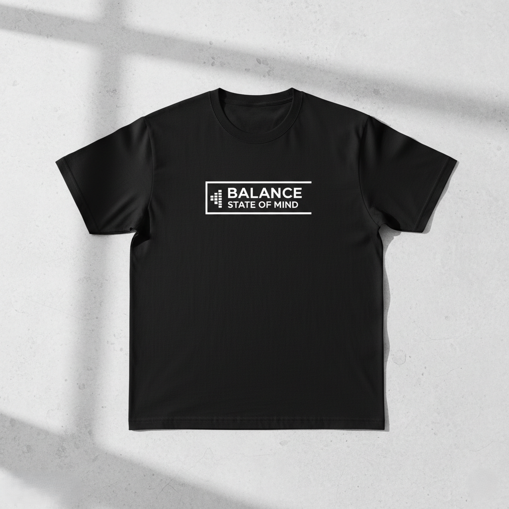 - Minimalist Graphic: Features “BALANCE STATE OF MIND” with an equalizer icon for an understated yet impactful look.